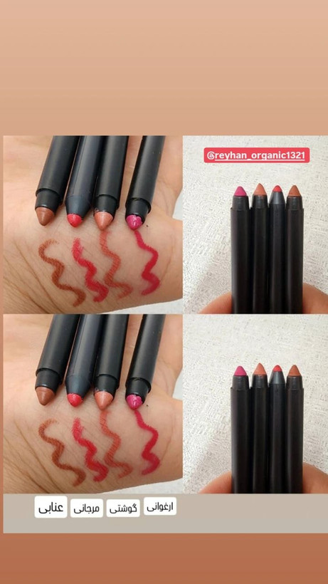 🌷خط لب ریحان🌷 اگه بخوایی رژلبت خیلی قشنگ باشه رولبات باید ازخط لب استفاده کنی وهم میتونی به عنوان رژلب ازش استفاده کنی خط لبهای ریحان منحصر بفرده چون ازروغن گل سرخ،ارگان،جوجوبا،موم زنبور ورنگهای طبیعی تهیه شده قیمت